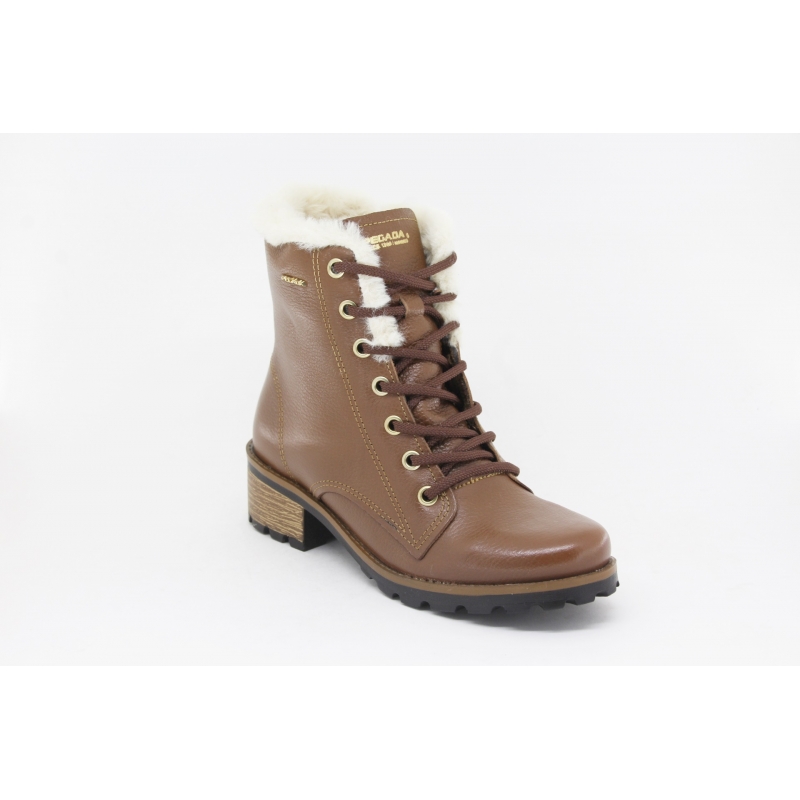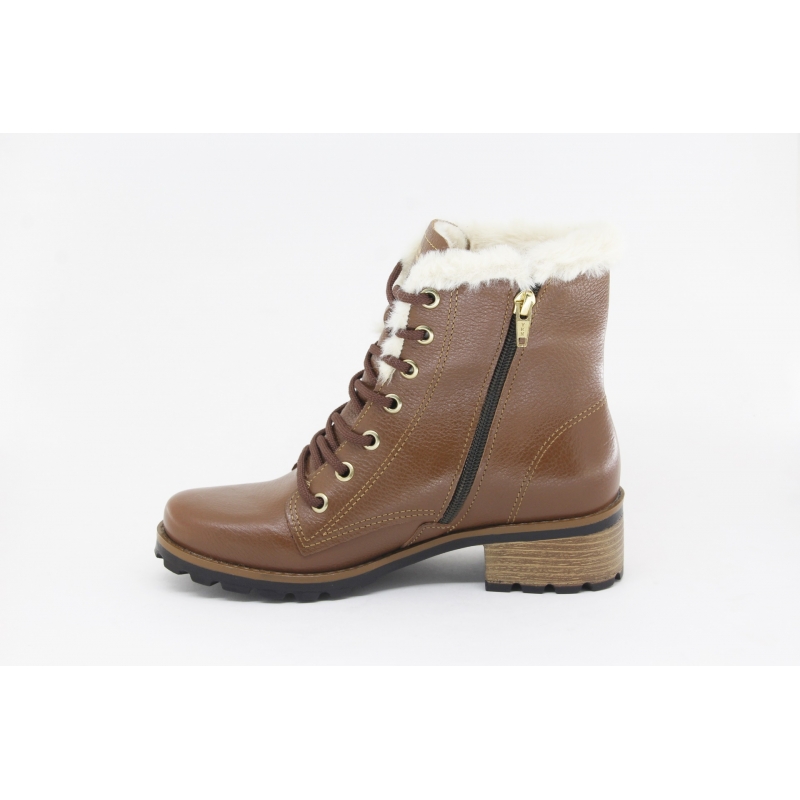 Bota Pegada meio salto com pêlo, com atacadores e fecho lateral